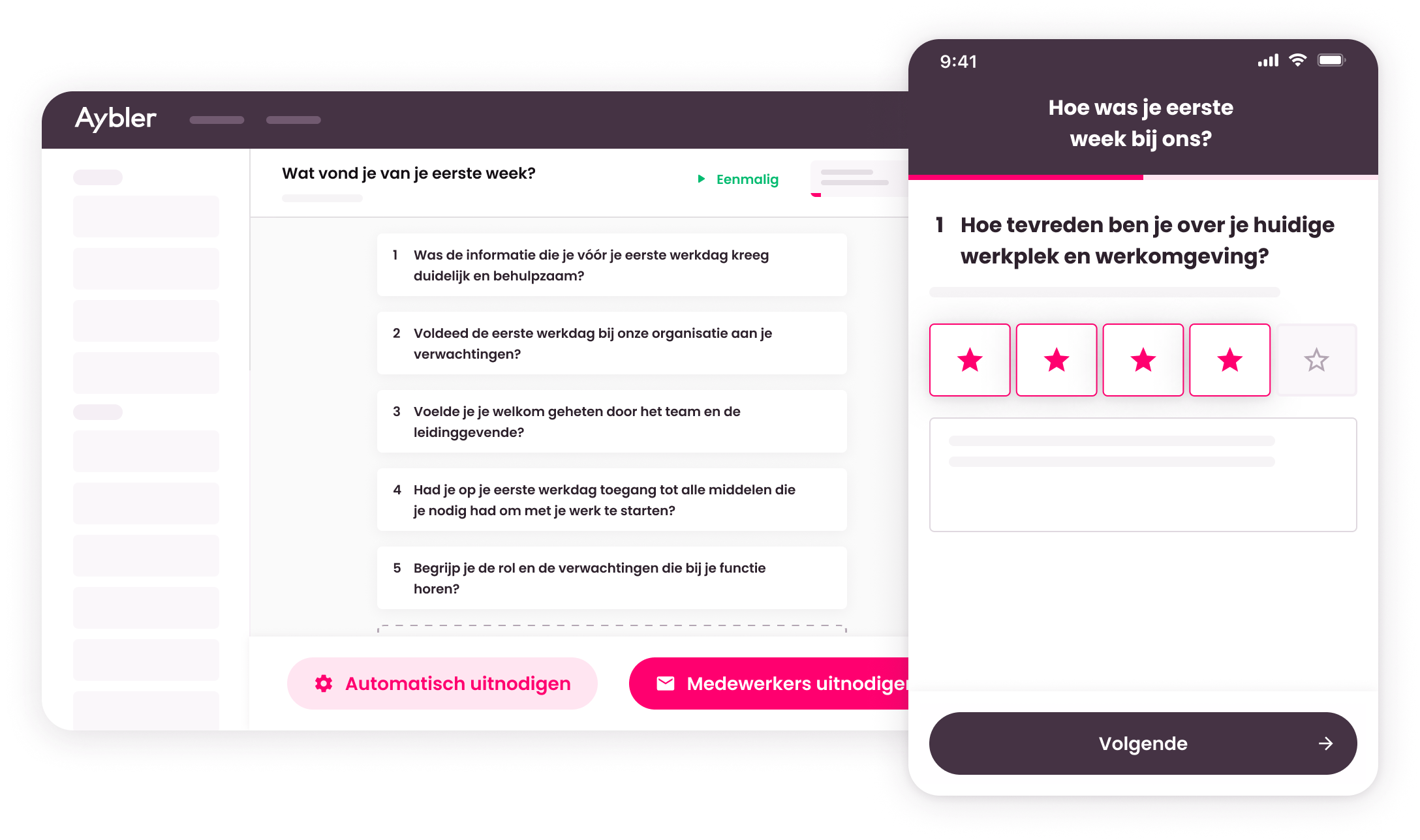 Met de medewerker feedbacktool verzamel je eenvoudig waardevolle inzichten. Maak in een handomdraai vragenlijsten op maat en deel ze direct met medewerkers via e-mail of pushbericht. Medewerkers kunnen laagdrempelig reageren, waar en wanneer het hen uitkomt.